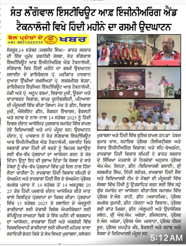 Sant Longowal Institute of Engineering and Technology, Longowal, Sangrur, Punjab